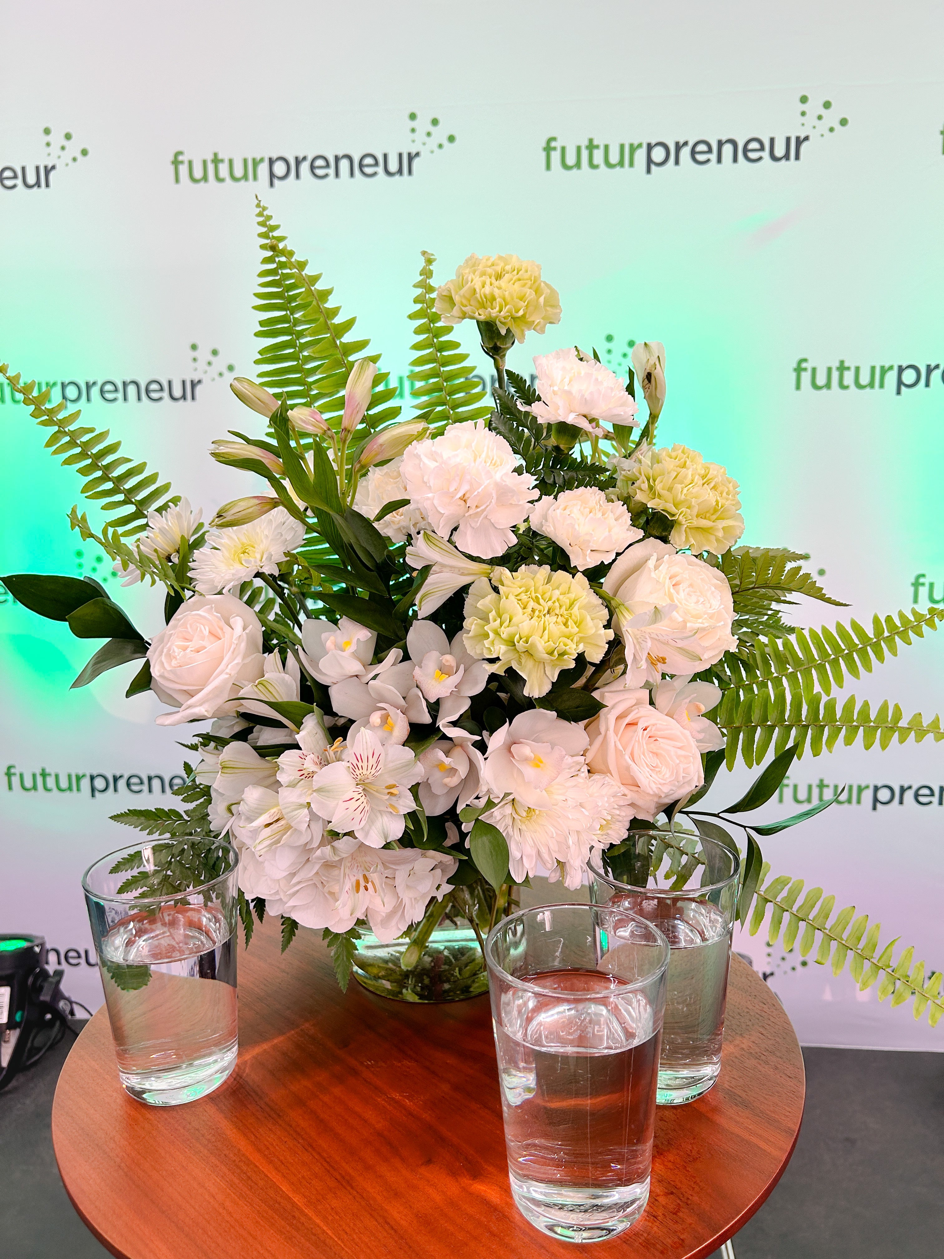 Futurpreneur Canada hosted an inspiring corporate event in Toronto, and our floral arrangements added a touch of natural elegance. The floral theme centered on a white and green palette, creating a fresh and sophisticated atmosphere that enhanced the welcoming nature of the event.