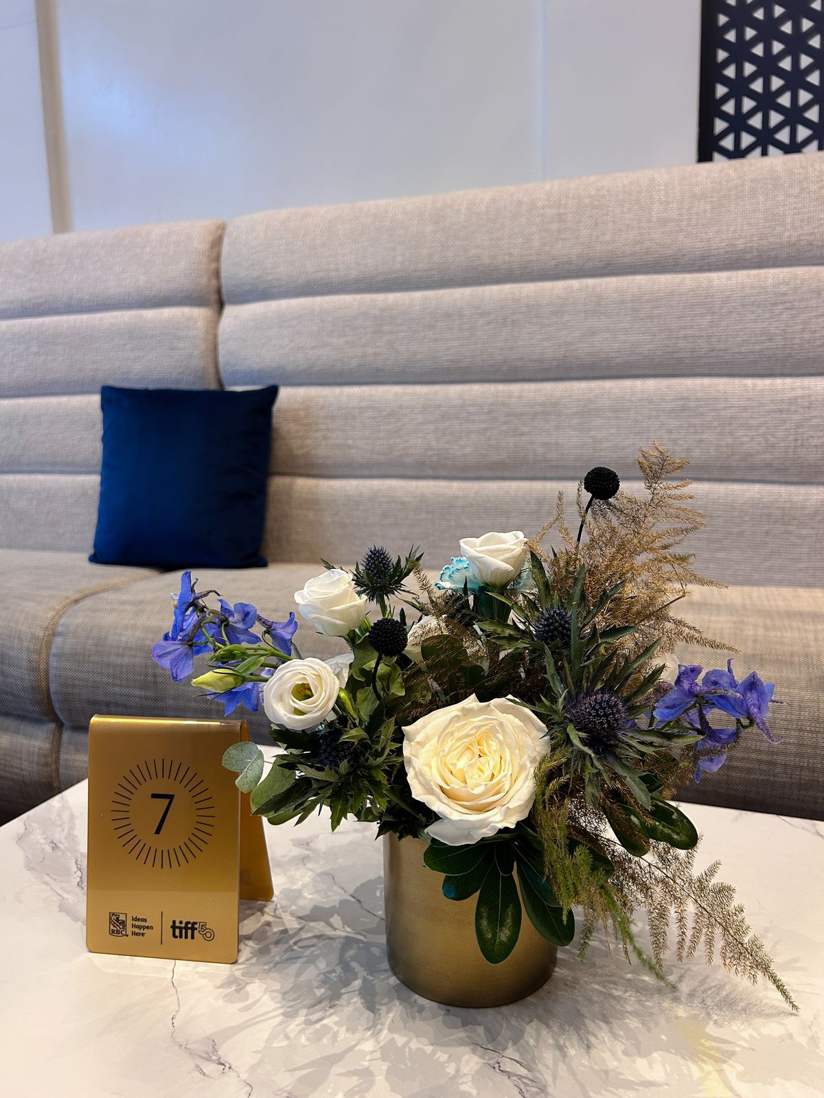Objective: To create an upscale, sophisticated floral atmosphere for a high-profile TIFF event hosting Hollywood's elite in an exclusive restaurant and lounge setting.