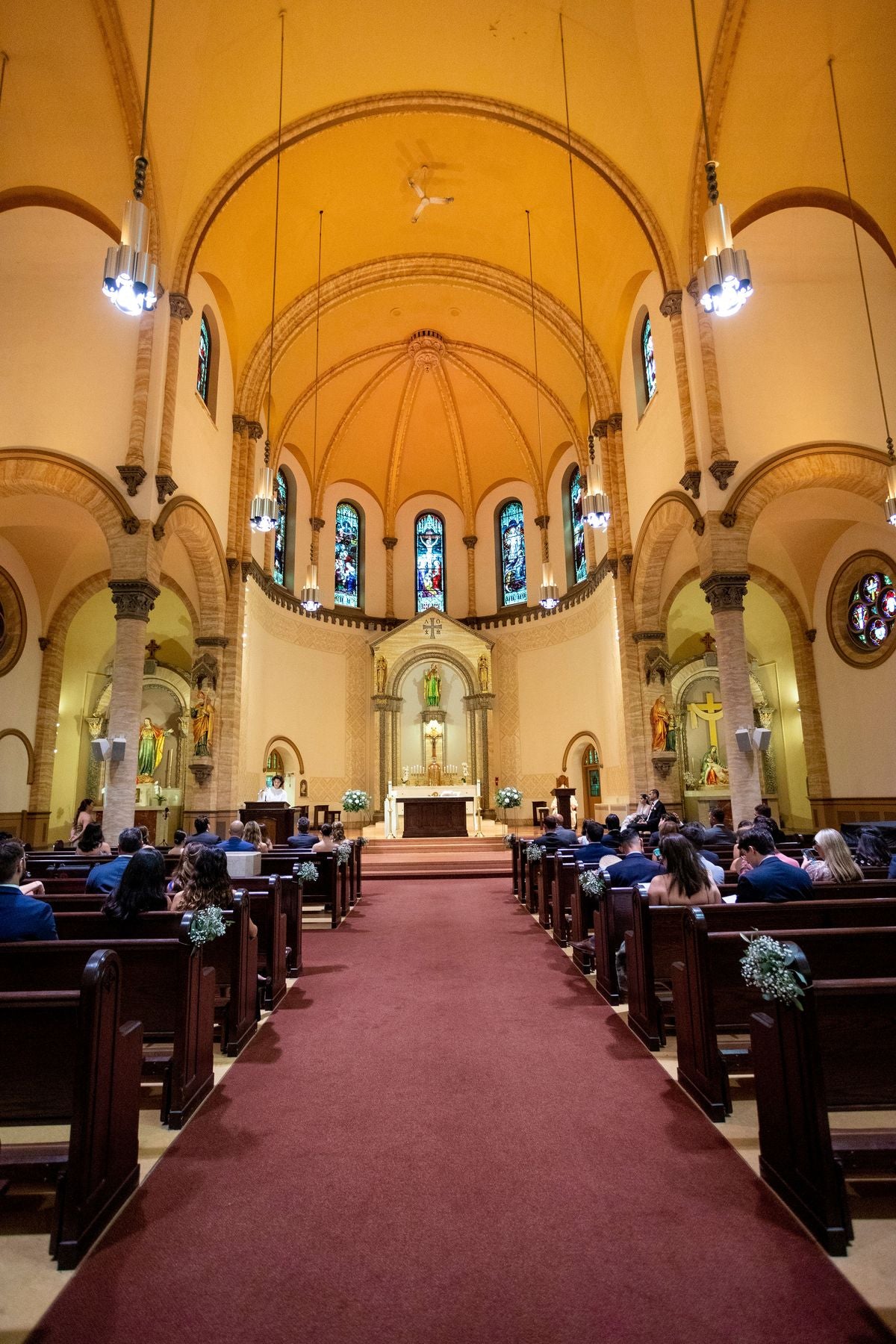 A Gentle Touch: A subtle yet stunning touch to the church's wooden pews was the addition of sprigs of baby's breath. This choice symbolized the day's purity and the gentle journey upon which the couple was embarking.