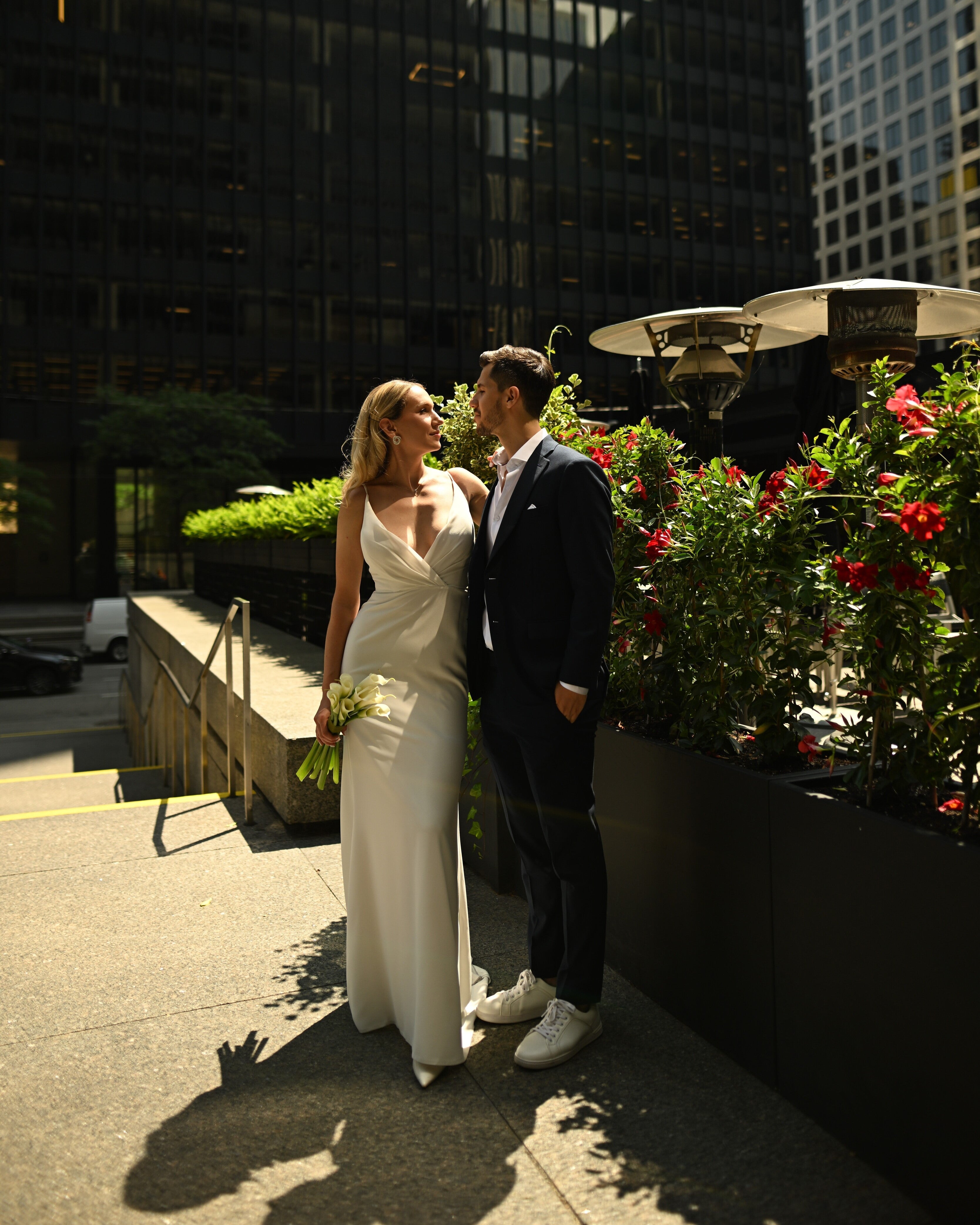 For Elena Velgusheva's wedding, simplicity met elegance with a stunning bridal bouquet of white calla lilies. The bouquet consisted of 7-9 carefully chosen tall calla lilies, known for their sleek and graceful shape, which added a touch of modern sophistication to Elena’s bridal look. Wrapped in a green ribbon that seamlessly matched the color of the stems, the bouquet exemplified understated elegance, allowing the natural beauty of the blooms to take center stage.