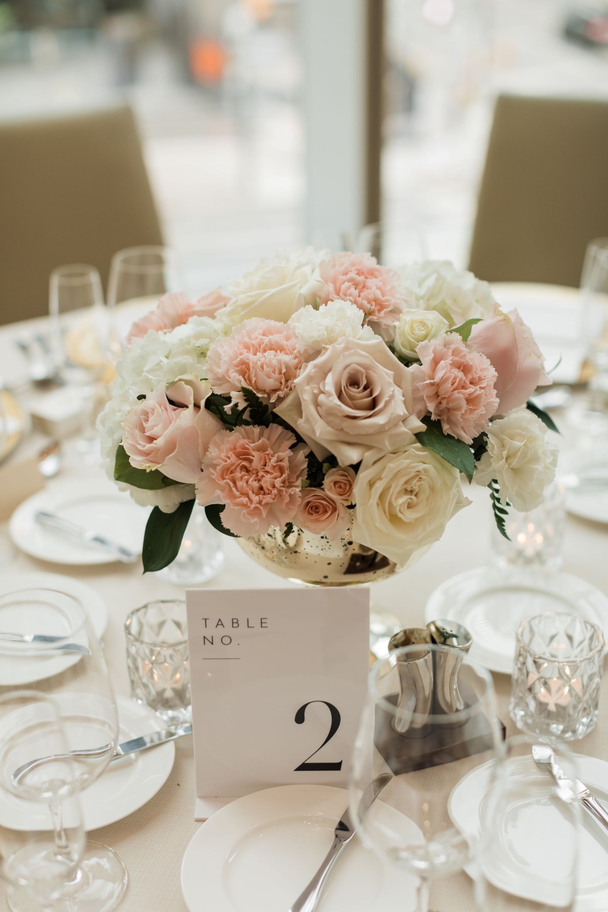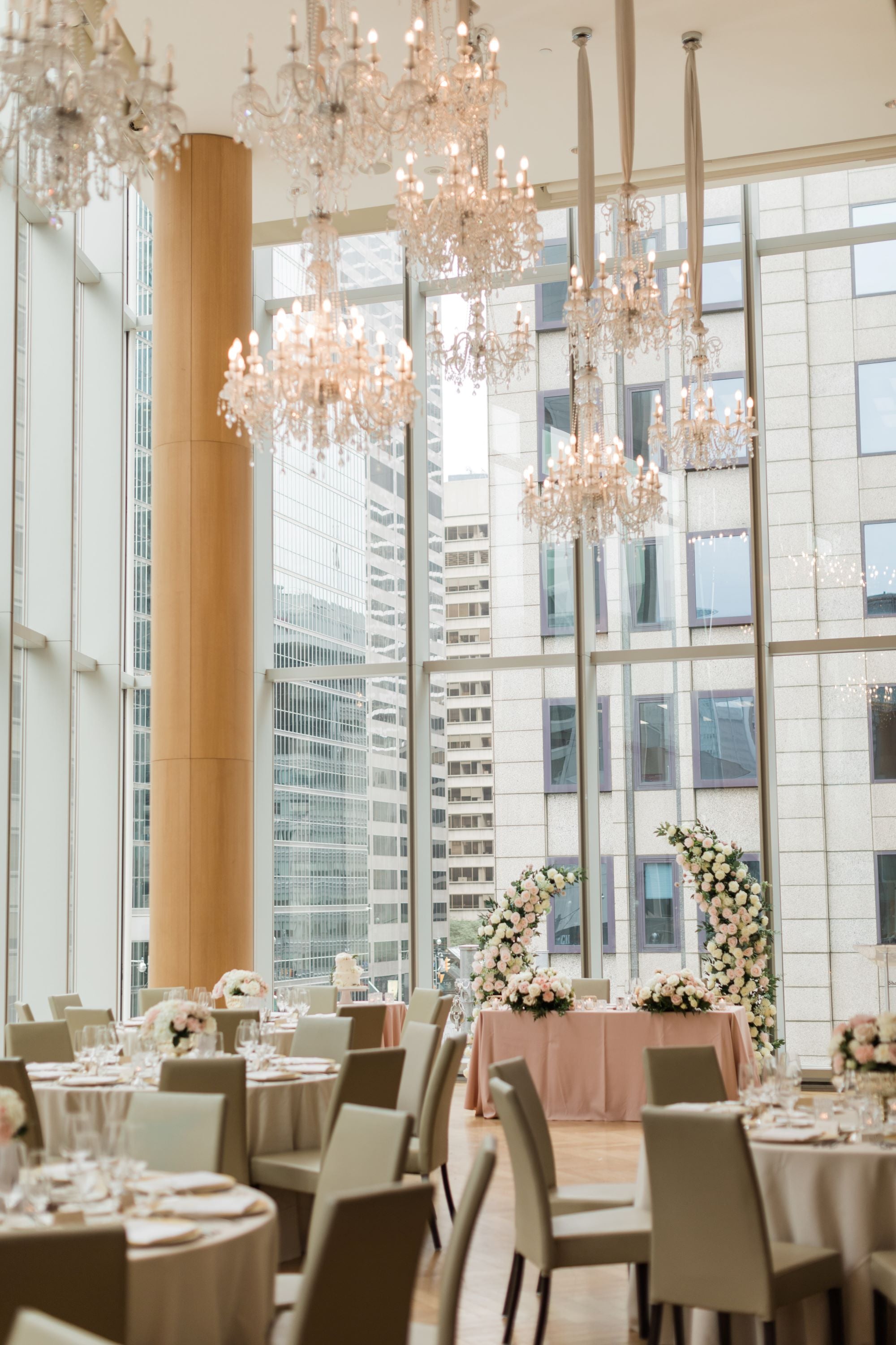 Objective: To create a sophisticated summer wedding aesthetic that balanced modern elegance with romantic softness, while complementing the venue's architectural features and skyline views.